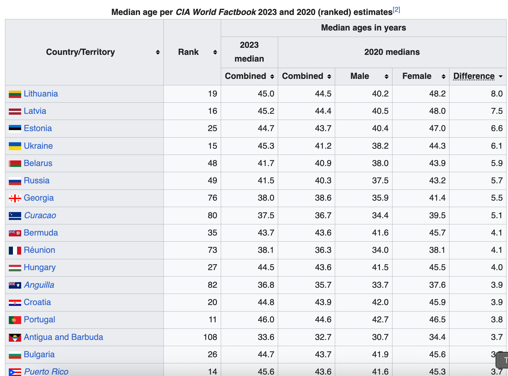 Eastern European Male-Female Median Age Differences (2023/2020)