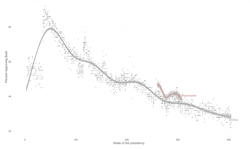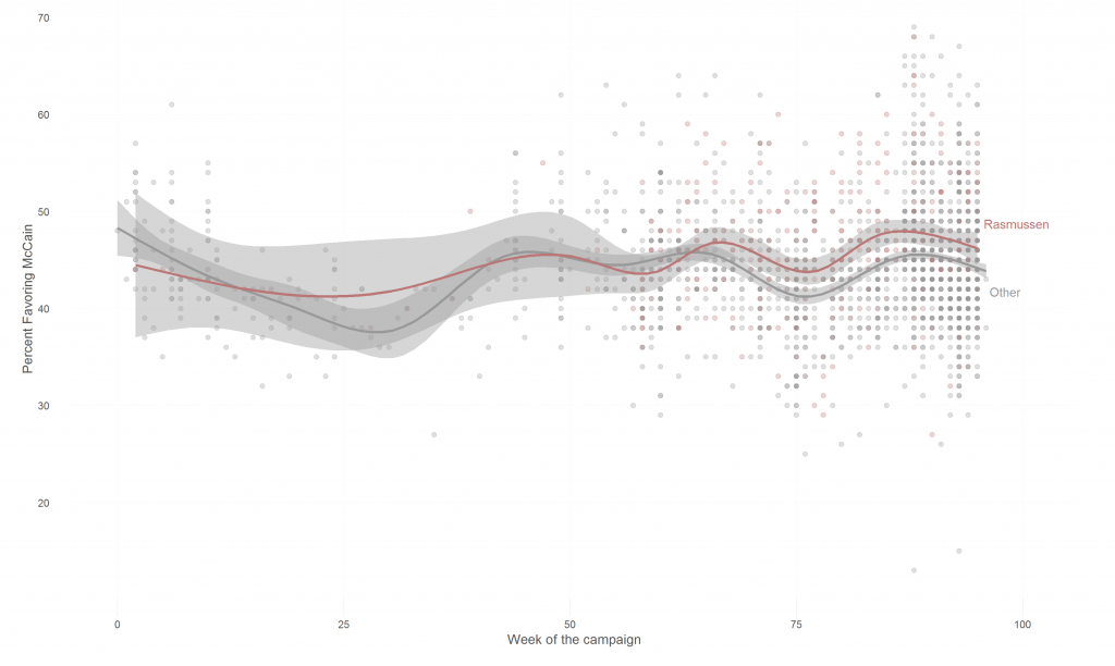 By Gaurav in Social Science — 12 Oct 2016 Rasmussen vs. the Rest For the data and scripts used to generate the graphs, see https://github.com/soodoku/pollbias.