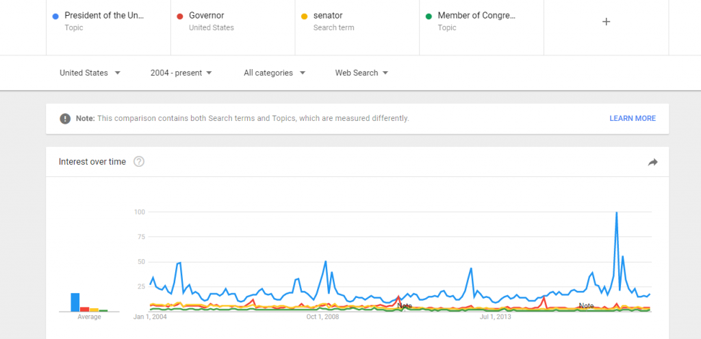 All politics may be local, but Google search data suggests that people are far more interested in learning about the president than they are in learning about their local politicians.