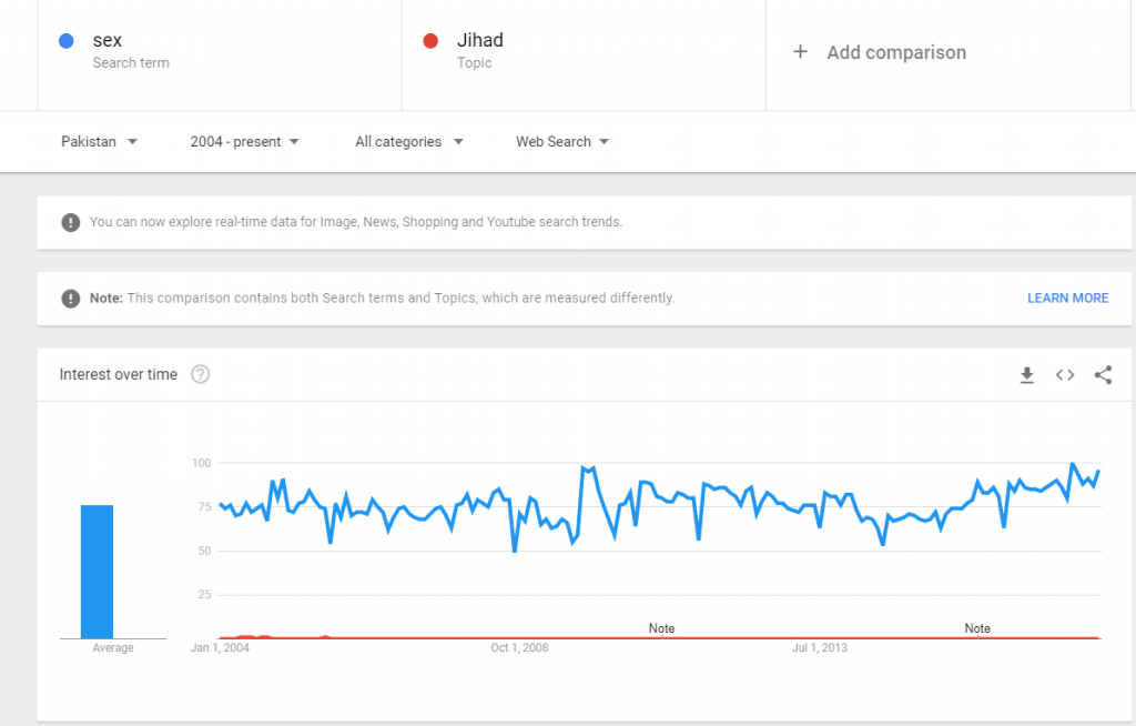 For fun, I also looked into search volume for sex and jihad in Pakistan.