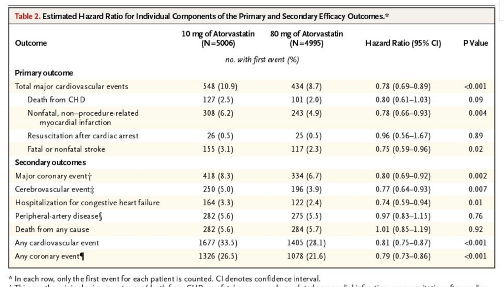 Here’s an excerpt from the TNT trial that compares side effects in the 10 mg arm to the 80 mg arm: