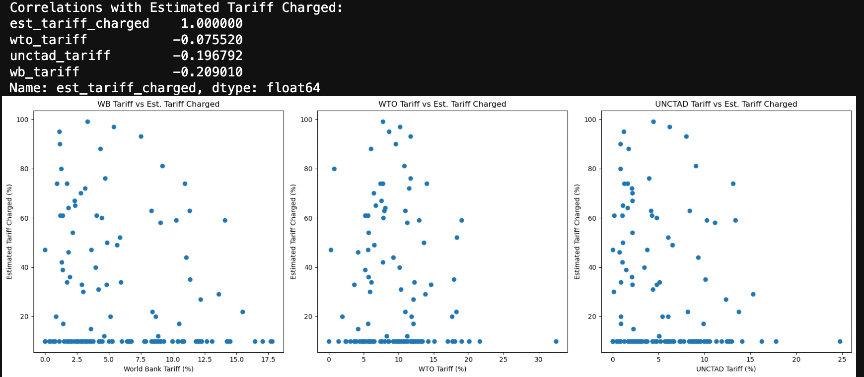 But how about the correlations? I tallied the correlation between the US administration's estimates of tariffs and the World Bank, WTO, and UNCTAD estimates (Wikipedia). The correlations are in the range of -.08 and -.2! So much for reciprocity.